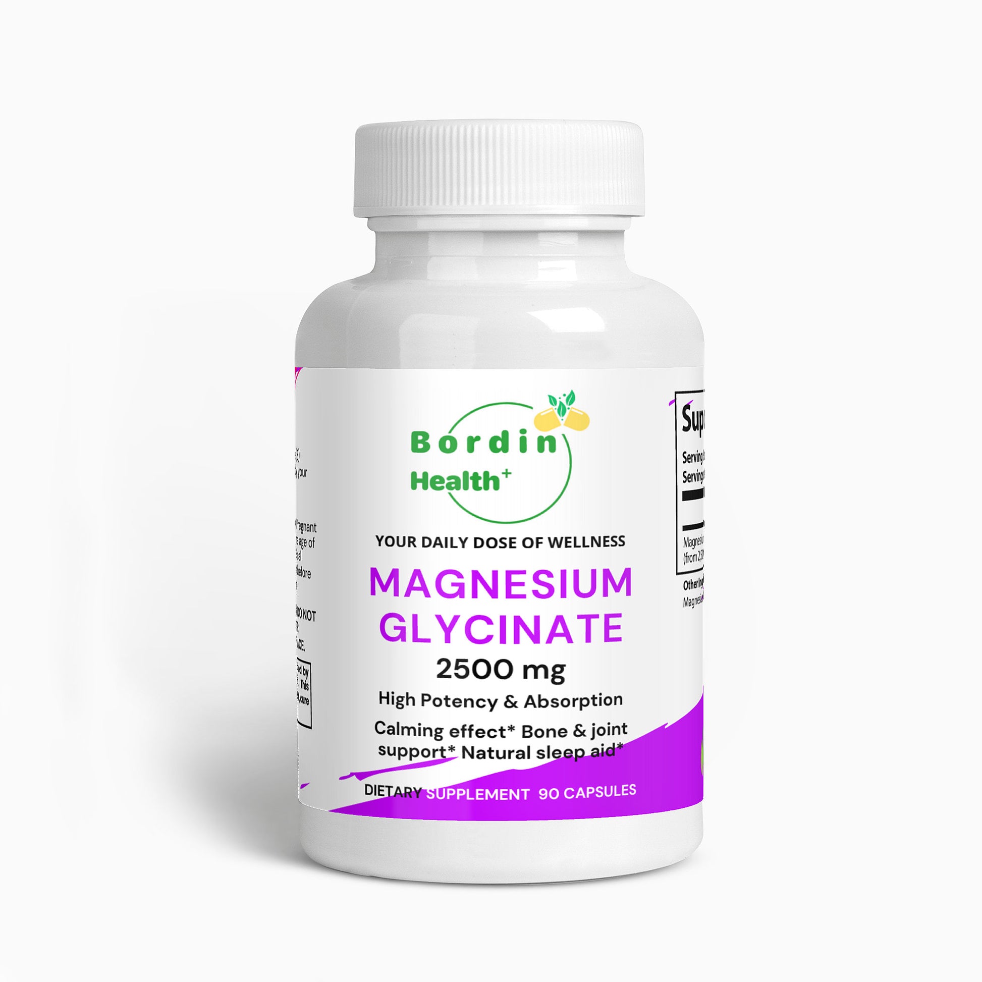 Bordin Health Magnesium Glycinate 2500mg - High Absorption Bisglycinate for Sleep, Calm & Bone Support - 275mg Elemental per Serving - 90 Vegan Capsules (30 Day Supply) - Non-Laxative.