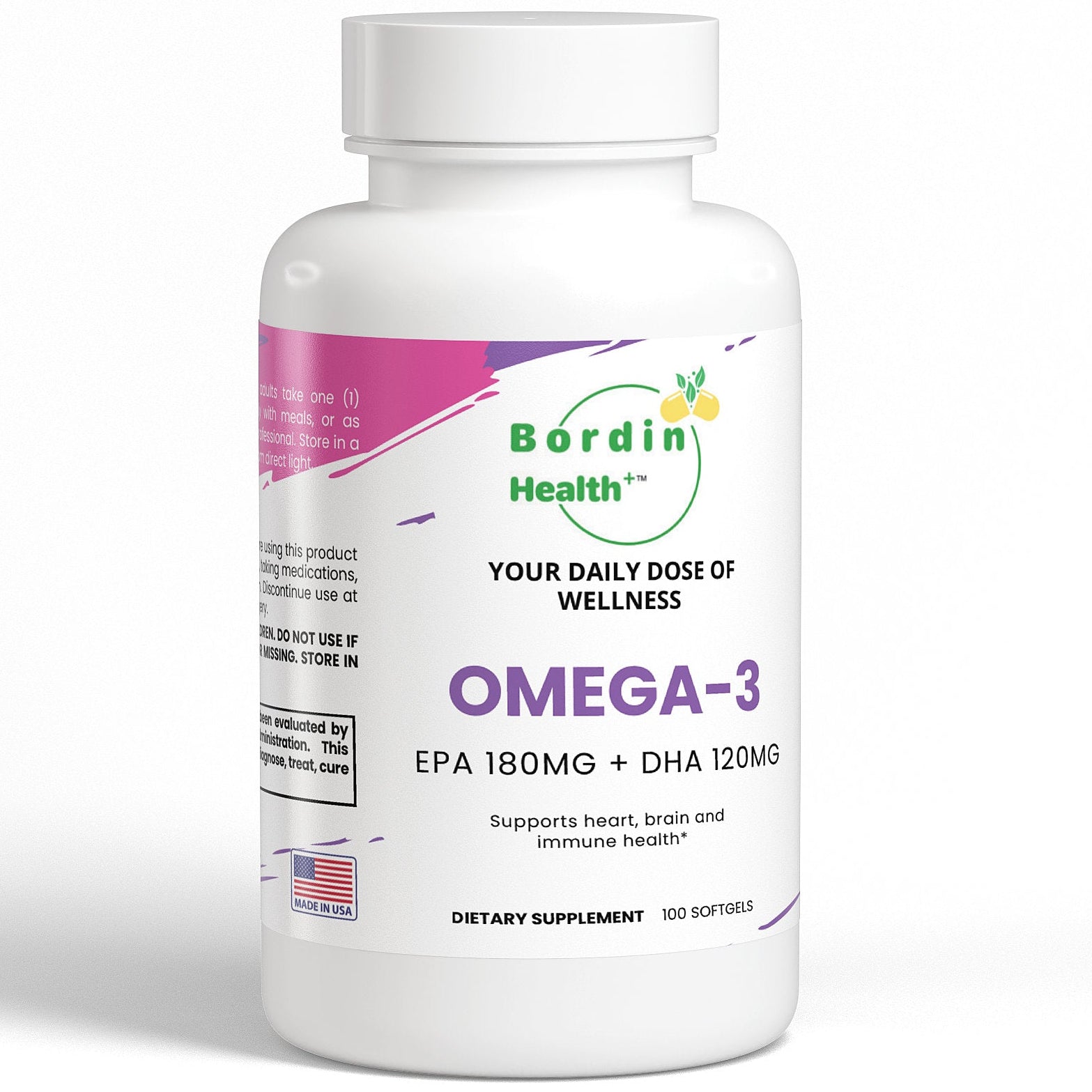Bordin Health Premium Omega-3 Triple Strength Fish Oil 1000mg - Pharmaceutical Grade EPA 180mg DHA 120mg - Wild-Caught Deep Sea Fish - Molecularly Distilled, Burpless - 100 Softgels - Made in USA